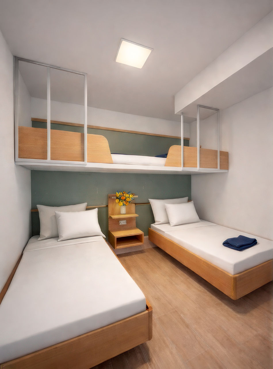 Located on the ground floor (on nearby to the main building resort blocks), the room opens directly to a shared pool area, so guests can step outside and enjoy refreshing dips throughout the day. Inside, the layout includes a main bedroom with a double bed, while the second sleeping area features 1 single bed and a bunk bed, comfortably accommodating up to 5 guests (4 adults & 1 child (4-11). A door separates the two spaces, providing the right balance of togetherness and privacy.