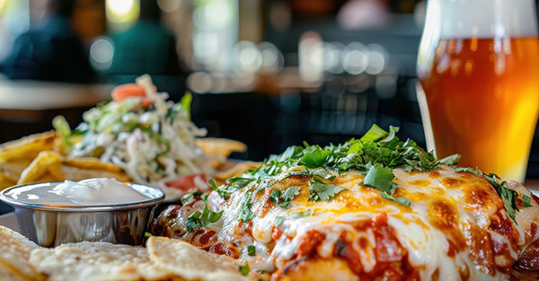 In einer wunderschönen Outdoor-Umgebung gelegen, bietet dieses einladende Bierhaus ein köstliches Abendessen mit reichhaltigen Aromen und erfrischenden Bieren.