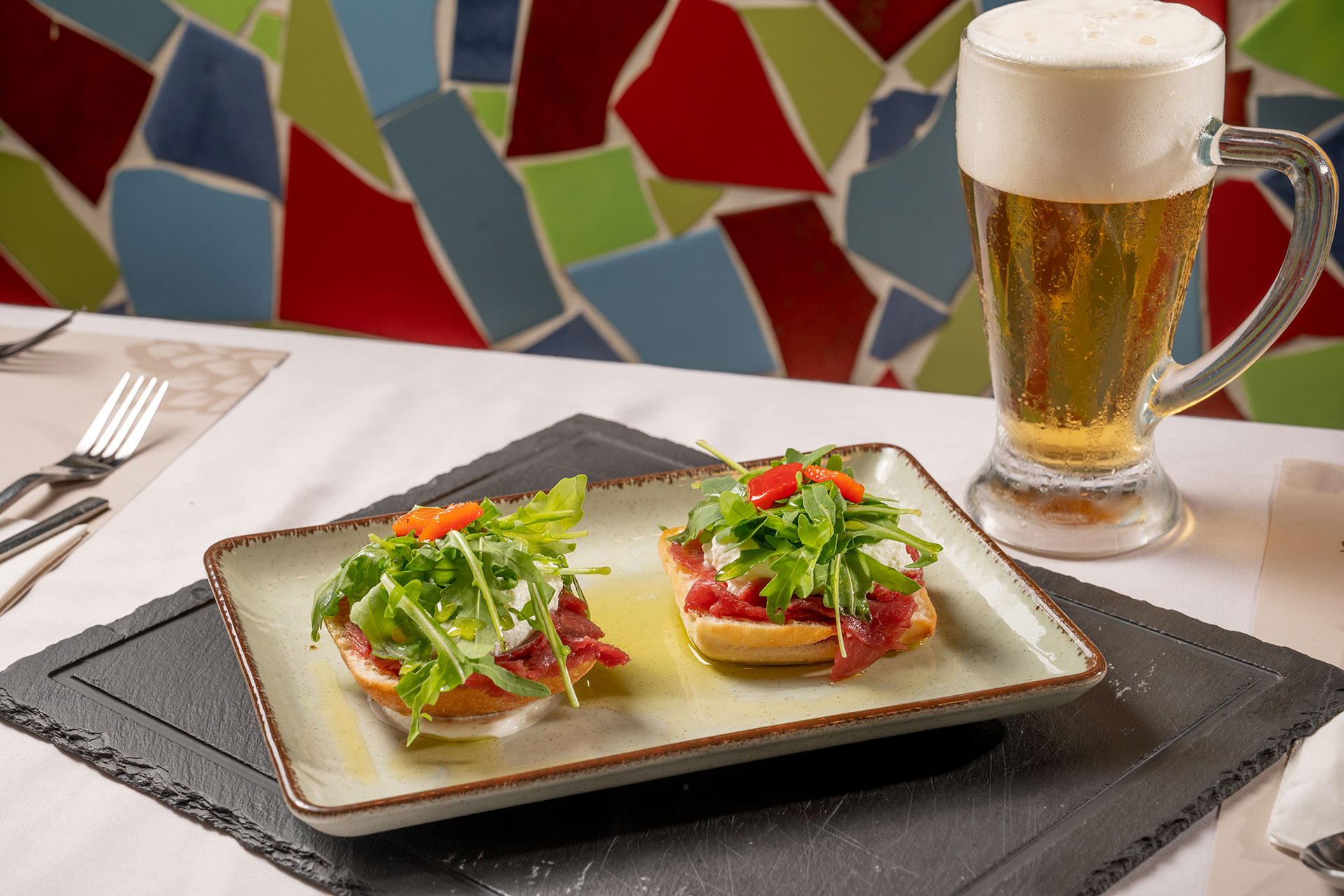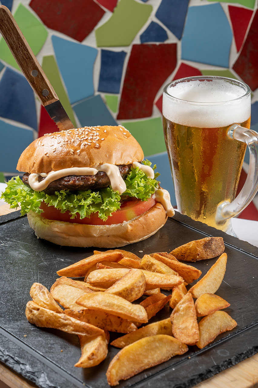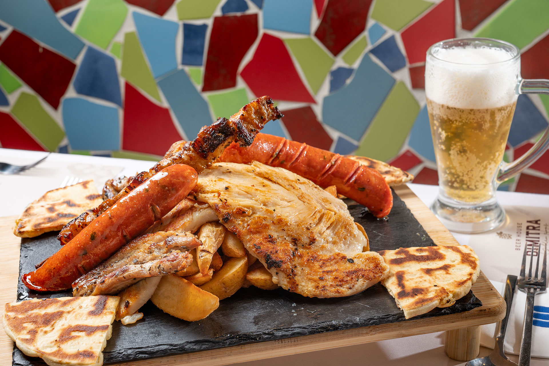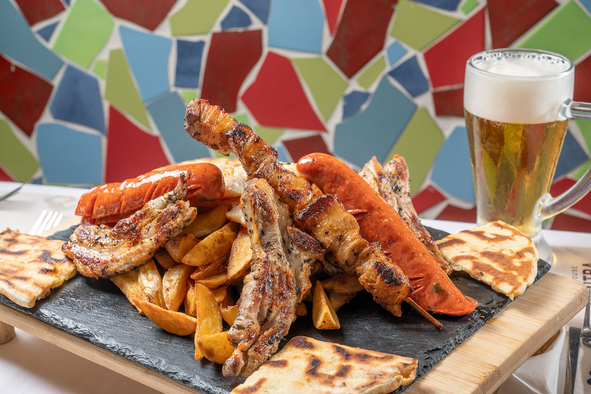 Το μενού περιλαμβάνει τραγανό σνίτσελ, ζουμερά λουκάνικα και άλλες παραδοσιακές σπεσιαλιτέ, ιδανικά συνδυασμένες με μια μεγάλη ποικιλία από Golden μπύρες.