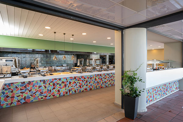 Στο μενού μας θα βρείτε μια μεγάλη ποικιλία από λαχταριστές επιλογές, από ελαφριά σνακ και γρήγορα γεύματα μέχρι έναν πλούσιο μπουφέ. Ο μεσημεριανός μας μπουφές περιλαμβάνει διεθνείς γεύσεις, φτιαγμένες με φρέσκα και υψηλής ποιότητας υλικά, εξασφαλίζοντας ένα απολαυστικό γεύμα για όλους.